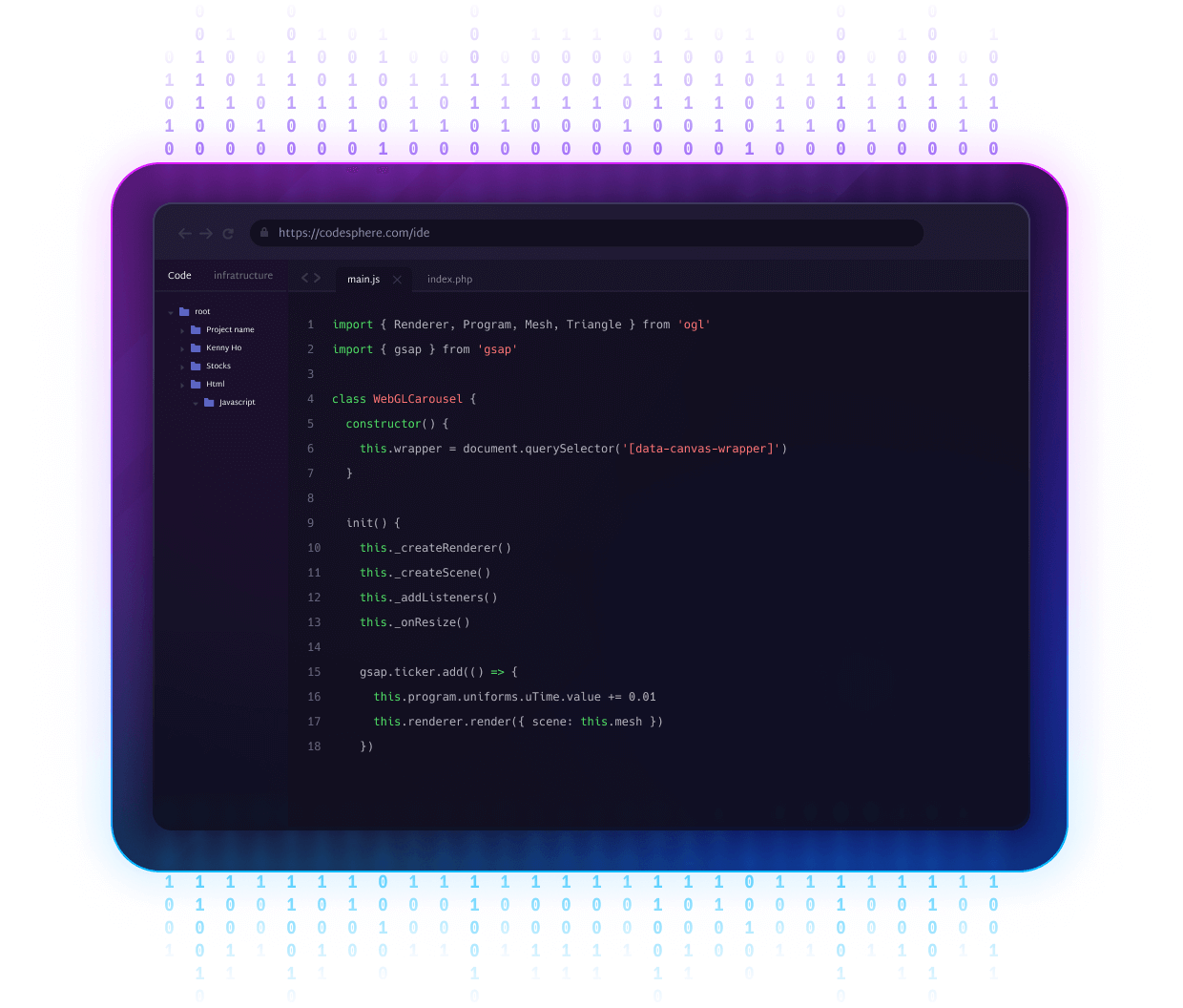 Codesphere comes with NodeJS and Python pre-installed, so you can code without spending hours configuring your environment. Codesphere also supports syntax highlighting and code completion for languages like HTML, CSS, JS, and Python.